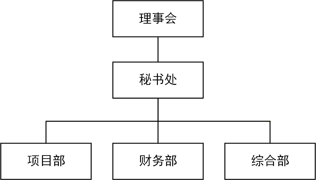 第三层次是秘书处下设的职能部门,即:项目部、财务部、综合部。